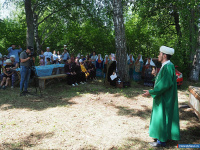 Народные песни в исполнении коллективов и солистов не смолкали. Участники то и дело пускались в пляс под весёлые мелодии и подпевали лирическим песням. Звучали тёплые слова и поздравления. В честь праздника обратился к собравшимся имам мухтасиб города Миасса и горнозаводской зоны Ахмад Хазрат Хасанянов. "Уважаемые гости! Сегодня у нас светлый солнечный день. Всех сердечно поздравляю с праздником! Сегодня мне хотелось бы напомнить о щедрости, которую мы должны проявлять и подавать такой пример нашим детям. Этот праздник - Карга боткасы - существует во многих тюркских народах, также как и традиция проявлять заботу о природе, в том числе животном мире. Пророк Мухаммед говорил: если будет так, что наступит засуха - ищите причину в скупости людей. Если приходит засуха, значит люди стали жадными. Будьте щедрыми! Господь щедр, говорит пророк Мухаммед. Поэтому после нашего душевного праздника мы проведём такой намаз - намаз "испрашивание дождя", обратимся к Господу, чтобы у нас в стране, в регионе, в Миассе не было засухи, не было пожаров", - сказал имам мухтасиб Ахмад Хазрат Хасанянов. В это время всем желающим предложили взять зерна и угостить им птиц. С особенным удовольствием в этом действе участвовали ребятишки. И вот что интересно: позже, после завершения праздника, едва успели прозвучать последние слова благодарности, а гости - собраться и двинуться в обратный путь, как хлынул долгожданный дождь. "Уважаемые гости, дорогие земляки, вы все знаете, что Наиля Садреевна в своё время преподавала в нашей школе. Я был одним из её учеников, и поэтому любые начинания наших земляков, которые делаются во имя добрых традиций, мы всегда будем поддерживать. От нашего сельхозкооператива позвольте заверить, что наш труд будет способствовать процветанию нашего родного края. Мы будем и впредь беречь наши традиции, развивать их и всячески помогать. Всем гостям - здоровья, семейного благополучия и процветания", - пожелал председатель СХПК "Черновской" Владимир Александров. Также с поздравлениями выступил руководитель территориального отдела Черновского Сергей Клевцов. Праздник завершился душевными благодарностями в адрес организаторов мероприятия и тех, без которых не случилось бы "вороньей каши" - костровых и поваров, а также спонсоров прошедшего праздника. Мастерицы из клуба "Ак инэйзэр" подготовили для них приятные презенты - собственноручно сшитые нарядные фартуки. "Праздник получился очень красивый, добрый. Посмотрите сколько детей сегодня! Спасибо вам большое, кланяюсь от всей души!" - обратился к организаторам Сергей Клевцов.