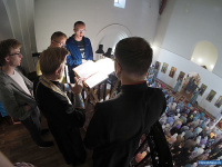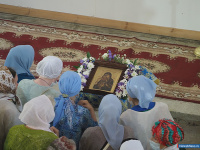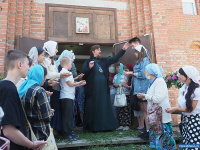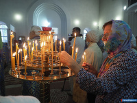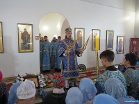Богослужение в Миассе в этот день возглавил управляющий Челябинской митрополией - митрополит челябинский и миасский Алексий, который посетил машгородок впервые. Его Высокопреосвященству сослужили благочинный Миасского округа протоиерей Георгий Крецу, настоятель храма иеромонах Герман (Чернышев) и другие клирики епархии. Основные богослужебные песнопения исполнил мужской хор храма в честь образа Божией Матери "Достойно есть" под руководством священника Макария Шиповского. Несмотря на будний день, большое количество молящихся пришли вместе встретить главный праздник храма. Кроме жителей Миасса участие в богослужении приняла делегация православной молодёжи из Пензенской епархии, приехавшая в гости к молодёжному миссионерскому обществу "Логос", которое также функционирует при храме "Достойно есть". Во время Божественной литургии клирик храма священник Макарий Шиповский был награждён правом ношения набедренника. Рядом с храмом, во дворе, проводилась благотворительная ярмарка, которую организовали местные рукодельницы из прихожан. Желающие могли приобрести себе замечательные поделки местных мастериц в обмен на пожертвование. По окончании богослужения митрополит Алексий поздравил верующих с престольным праздником храма и поблагодарил за общую молитву, особенную благодарность выразив настоятелю храма иеромонаху Герману (Чернышеву). В своей речи Владыка Алексий заметил, что на приходе ведётся масштабная работа, а также отметил большое количество молодёжи, деятельность которой развивается на приходе.