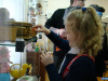 Новая экспозиция "Игрушечный привет из СССР", разместившаяся в малом выставочном зале Дома народного творчества (0+) приглашает посетителей окунуться в детские годы: в витринах разместились куклы и игрушки, которыми играли родители нынешнего молодого поколения. Своей коллекцией поделилась коллекционер Ирина Дунаева из села Маслово. В зале разместились несколько десятков экспонатов: это и куклы, и пупсы, и пластиковые зверушки, и головоломки. Кукольные наборы посуды и предметы мебели соседствуют с детскими швейными машинками и школьными принадлежностями. Выставка эта, как нынче говорят, интерактивная: хозяйка коллекции не возражает против того, чтобы к экспонатам прикасались. Напротив, она и сама считает, что игрушкам нужно внимание! У печальной перепачканной куклы, когда её умоешь, переоденешь, да поговоришь с ней, даже глаза начинают блестеть, признаётся Ирина Дунаева. Юные посетители с радостью пользуются щедрым разрешением: бросают кольца кольцеброса на вытянутые шеи гусей, возят кукол в колясках, баюкают, поят их чаем с воображаемыми лакомствами... Особым успехом пользуются игрушки для мальчиков: радиоуправляемые машинки кружатся по вращающемуся колесу с изображёнными дорогами. Но гвоздь программы - это бинокль со стереокартинками (советское 3D!), рабочий патефон с настоящими пластинками и фильмоскоп. И - да, даже к этому чуду техники ребятам разрешают прикоснуться - как в давние времена, когда право крутить ручку и менять кадры диафильма доставалось в награду тому из детей, кто всю неделю хорошо себя вёл. Увлечение реставрацией игрушек овладело Ириной Дунаевой в 2014 году. Всё началось с того, что дочери Ирины школьная подружка показала куклу Monster High. Игрушка показалась девочке страшной. "А у вас тоже были такие страшные игрушки?" - поинтересовалась дочь. "Нет, игрушки в нашем детстве были добрыми?", - ответила Ирина, и отправилась искать для примера свои игрушки... В детстве она, как и многие, интересовалась рукоделием, ходила в кружки, вязала. Вязание прочно вошло в её жизнь, хотя во взрослой жизни она большей частью вязала на заказ шали и палантины. Теперь вернулись и кукольные наряды, ведь нередко старые игрушки попадают в руки коллекционера не в самом ухоженном виде... Впрочем, у некоторых сохранился и прежний наряд, и даже история. Так, кукла-невеста когда-то украшала свадебный автомобиль родителей дарительницы. Теперь женщина сочла, что игрушка принесёт больше радости, если будет находиться в заботливых руках Ирины. Ирина не жалеет своих сокровищ и с удовольствием делится ими со зрителями. Взрослые с радостью совершают ностальгическое путешествие в своё детство, а дети - знакомятся с игрушками своих родителей. Организаторы рассказывают, что порой ребятишки целые дни проводят в выставочном зале, пользуясь разрешением играть. Примечательно, что даже самые юные зрители относятся к игрушкам бережно и не ломают их. На торжественное открытие хозяйка коллекции прибыла вместе с мужем и детьми. Супруг Александр поддерживает увлечение жены. И, хотя порой он шутливо ворчит, что в доме все места заняты куклами, не сесть ни на кресло, ни на диван, - он и сам не чужд прикоснуться к ретро-игрушкам. Руками Александра вырезаны из дерева кукольный стол и стульчики, гладильная доска и многое другое. Не обходится без его участия и ремонт особ