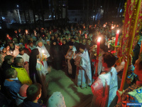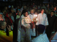 Вчера, 24 апреля, православные христиане во всём мире отмечали Светлое Христово Воскресенье. Не стал исключением и Миасс: в ночь с субботы на воскресенье во всех храмах города прошёл пасхальный крестный ход. Крестный ход означает шествие церкви навстречу воскресшему Спасителю: крестный ход останавливается перед закрытыми дверями храма, как бы у входа ко Гробу Господню. Затем священник, держа в руках крест и трёхсвечник, творит ими крестное знамение у закрытых дверей храма, они открываются, и все, ликуя, входят в церковь, где горят все светильники и лампады, и поют: "Христос Воскресе!". После крестного хода начинается праздничное богослужение. Посмотреть, как проходил крестный ход в северной части Миасса в храме иконы Божьей Матери "Достойно есть", можно на снимках нашего коллеги Александра Мизурова.