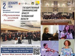 Молодые таланты Миасса не устают радовать своими успехами. Совсем недавно в Миассе прошёл яркий концерт Детско-юношеского симфонического оркестра Челябинской области, в который входят и наши, миасские юные музыканты. Кстати, всероссийская презентация этого проекта состоялась буквально в эту субботу, 12 ноября в Санкт-Петербурге. Теперь же своё мастерство готовы продемонстрировать молодые артисты не просто со всего региона, а исключительно из Миасса! Они поднимутся на одну сцену с прославленным симфоническим оркестром Челябинской области под руководством Адика Абдурахманова (6+).