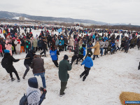На проводы зимы собрались сотни миасцев и гостей города - от мала до велика. И каждый участник праздника мог выбрать занятие по душе среди многочисленных народных забав и аттракционов. Гостей ждали кулачные бои, колка дров, метание мячей, песенно-чайная площадка, карусели, тиры, метание из лука, молодецкие игры и, конечно, же традиционный столб с призами.