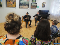 Дом народного творчества в очередной раз порадовал миасских ценителей изобразительного искусства свежей выставкой и новыми именами авторов. В эти дни в выставочном зале ДНТ свои работы демонстрирует художник Александр Иванов и участники его творческой мастерской. Интересно, что мастерская работает в городе Челябинске, а вот её ученики, как и сам руководитель, живут в разных уголках нашей области. Стены зала украсили 60 живописных работ. Большая часть из них выполнены педагогом, другие принадлежат кисти других членов творческого коллектива. Мастерская Александра ещё совсем юная, ей нет и года. Участников - людей из разных городов, с разным образованием и взглядами на жизнь, любимыми творческими направлениями сплотили любовь к живописи и желание учиться. Они собираются, чтобы отвлечься от повседневной суеты и постигнуть секреты мастеров прошлого и освоить современные живописные техники. Единомышленники вместе участвуют в мастер-классах, а также общаются вне студии - посещают тематические мероприятия и просто дружат. Нынешняя выставка стала первым маленьким итогом работы мастерской. На вернисаже Александр Иванов и его товарищи рассказали гостям о себе, о том, как родилась идея творческой мастерской, в чём кроются секреты вдохновения и каковы планы на будущее. Разумеется, многие гости заинтересовались: может ли присоединиться к мастер-классам любой желающий? Гости с удовольствием ответили на все вопросы зрителей. А выступления юных музыкантов из Детской школы искусств дополнили впечатление от выставки. Своими выступлениями вернисаж украсили Давид Саидгалин, Денис Гилязев, Степан Смирнов (преподаватель Валерий Егоров). Полюбоваться творческими поисками участников мастерской Александра Иванова может любой желающий. Выставка (0+) будет работать в Доме народного творчества до 17 апреля.