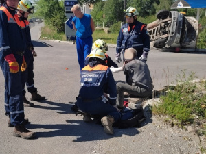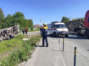 Вчера, 14 июня, в Миассе произошла авария с участием двух грузовых автомобилей. Машины столкнулись на Объездной дороге. В ликвидации последствий принимали участие специалисты МЧС. Авария произошла утром, на Объездной дороге. Два грузовика столкнулись; от удара один из них вылетел на обочину и перевернулся. Топливо из пробитого бензобака вылилось на дорогу. Один из водителей получил травму - повреждена оказалась левая рука. На место происшествия вызвали специалистов чрезвычайных служб. Прибывшие спасатели Миасского отряда областной ПСС отключили аккумуляторную батарею и газовое оборудование повреждённого автомобиля, отсыпали землёй разлившийся бензин и оказали первую помощь травмированному водителю. По данным управления ГОЧС Миасса, за прошедшие сутки было зарегистрировано пять дорожных аварий. В одной из них пострадала несовершеннолетняя девушка-пешеход, пересекавшая проезжую часть по "зебре".