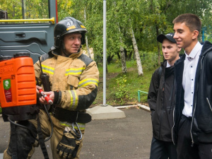 В День знаний огнеборцы рассказали старшеклассникам о своей профессии
