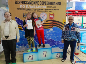 На прошлой неделе, с 20 по 22 февраля, в Челябинске прошли всероссийские соревнования по плаванию спорта лиц с интеллектуальными нарушениями (ЛИН), а также первенство и чемпионат Челябинской области. Пловцы с ограниченными возможностями здоровья из Миасса - воспитанники спортивной школы олимпийского резерва "Вертикаль" - приняли участие в первых двух стартах, куда допускались не только взрослые, но и юные спортсмены. Участницы из Миасса Анна Павлуцких и Яна Кочергина соревновались в группе "девушки 2007 года рождения и младше". Юные спортсменки приобрели бесценный опыт, соревнуясь в одних заплывах с чемпионками и призёрами российских первенств, имеющих взрослые разряды и спортивные звания. По итогам стартов Всероссийских соревнований по плаванию (спорт ЛИН) сразу три медали завоевала Яна Кочергина: серебро на дистанции 50 метров брассом, а также бронзу на дистанциях 50 метров вольным стилем и 50 метров на спине. Анна Павлуцких показала третий результат на дистанции 200 метров на спине. Отличные результаты продемонстрировали девушки и на чемпионате Челябинской области. Анна Павлуцких заняла вторые места на дистанциях 50 метров брассом, 50 метров на спине и 200 метров на спине. Яна Кочергина стала третьей на дистанции 50 метров брассом. Поздравляем спортсменок и тренерский состав, желаем девочкам в дальнейшем роста спортивного мастерства, участия в соревнованиях высокого уровня, спортивных побед!