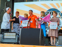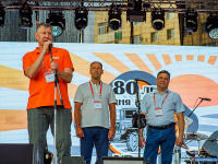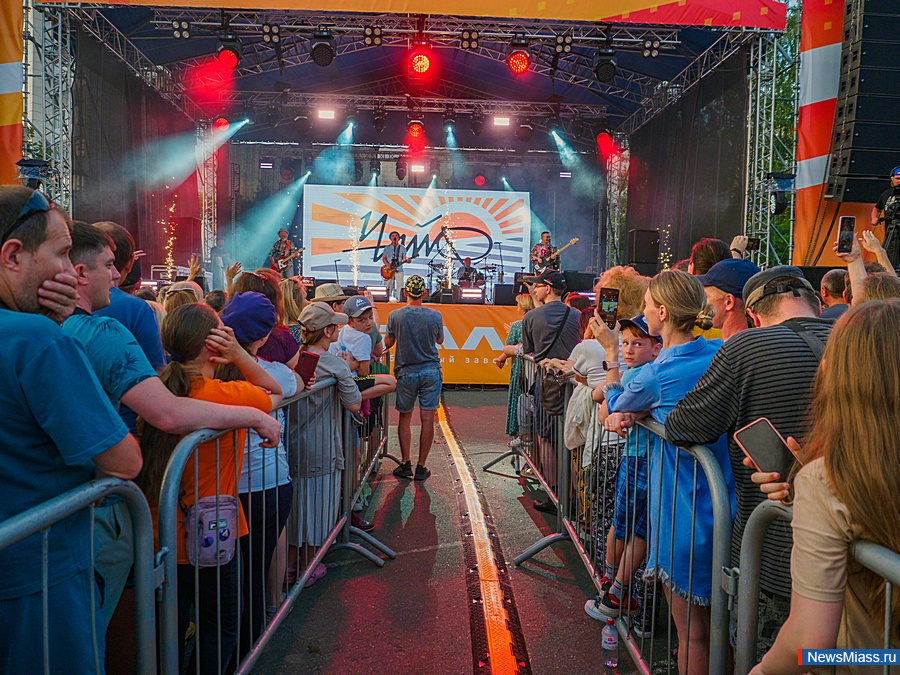 Открыла праздничный концерт группа "МП-3", исполнив хиты прошлых лет. Не обошлось и без официальной части: с юбилейной датой миасцев поздравили и.о. главы Миасса Олег Буданов, председатель Собрания депутатов МГО Дмитрий Проскурин и генеральный директор АЗ "Урал" Павел Яковлев. Видеопоздравление сотрудникам и ветеранам автозавода прислал губернатор Челябинской области Алексей Текслер. Приятным моментом стало вручение денежных сертификатов победителям конкурса грантов на реализацию своих проектов в рамках профориентационного обучения. Такие сертификаты из рук Павла Яковлева получили детские сады № 14 и № 98, а также школа № 22. Затем на сцене появились долгожданные многими зрителями звёзды - группа "Чайф", подпевал которым весь Миасс. Легенд эстрады сменил известный ди-джей Леонид Руденко. А завершился праздник ярким и громким салютом. Стоит отметить, что несмотря на большое количество людей, пришедших на площадь, - а их было порядка 15 тысяч человек, праздник прошёл без происшествий. Правопорядок обеспечивали полицейские Миасса - одновременно 96 сотрудников миасского отдела МВД. Содействие полицейским в охране общественного порядка оказывали сотрудники Росгвардии, а также работники частных охранных предприятий, участники добровольных народных дружин и представители казачества. Самые яркие моменты праздника - на снимках нашего коллеги Александра Мизурова.