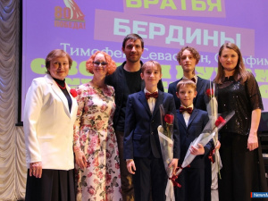 На прошлой неделе в Миассе в ДШИ № 2 имени Ш. С. Амирова прошёл замечательный концерт музыкантов, которых теперь знают многие южноуральцы, ведь поющие братья Бердины в конце 2024 года стали финалистами Всероссийского телевизионного конкурса "Синяя птица". Тогда, в конце декабря минувшего года, многочисленные телезрители с удовольствием наблюдали за выступлением трио Бердиных, которые проникновенно исполнили песню "Ассоль" (музыка Е. Попляновой, стихи А. Середы), а также спели вместе с Романом Костомаровым песню "Ты - человек!" (музыка Е. Крылатова, стихи Ю. Энтина). Конечно, благодаря такой популярности, в зал ДШИ № 2 Миасса на концерт пришли самые активные слушатели, которые хотели услышать не только полюбившиеся песни, но и получить новые впечатления. Концертную программу открыла главный человек этого творческого коллектива - мама и педагог поющих мальчиков Наталья Бердина. Она искренне поблагодарила всех, кто голосовал за выход её сыновей в финал конкурса "Синяя птица". Поблагодарила Наталья Юльевна также за поддержку город Миасс, детскую школу искусств № 2 имени Ш. С. Амирова, концертмейстера Татьяну Фильшину и всех, кто продолжает помогать музыкальной семье создавать новые проекты. Музыкальная программа этого вечера началась с классических произведений: в исполнении трио Бердиных прозвучали "Ноктюрн" Моцарта и "Не ветер вея с высоты" Римского-Корсакова. Показали мальчики и мастерство пения без сопровождения, исполнив латышскую народную песню "Лес раскинулся дремучий" и широко известную песню "Одинокая гармонь" Б. Мокроусова. Затем младший из братьев, Серафим, представил сольные проекты. В его исполнении очень выразительно прозвучали песни "Кораблик" (музыка Д. Кабалевского, стихи С. Маршака) и "Песня Незнайки" из мюзикла "Незнайка" В. Баскина. Добавим, что в этом мюзикле Серафим в 2024 году исполнил роль Незнайки, а сам мюзикл был показан и в селе Кундравы, и в Миассе, и даже в Челябинске. Следующая страница концерта была посвящена патриотическим песням. Дуэт Серафима и Севастьяна исполнил хорошо известную песню "Лизавета" (музыка Н. Богословского, слова Е. Долматовского), затем уже в трио прозвучала песня Матвея Блантера "В дорогу дальнюю". И в завершении этой части концерта выступил старший из братьев - Тимофей, исполнив знаменитую песню Микаэла Таривердиева на слова Роберта Рождественского "Песня о далёкой Родине". Конечно, все слушатели с нетерпением ждали исполнения песни "Ассоль" Елены Попляновой, замечательного композитора. Но прежде поющие музыканты представили премьеру цикла Елены Попляновой "После войны" на стихи Андрея Дементьева. В концерте были исполнены две части цикла: "Весть о Победе" и "Памятник Солдату". И ещё одно произведение Попляновой прозвучало в исполнении трио Бердиных - "Песня Синей птицы", словно напоминание о тех незабываемых днях пребывания на конкурсе в Москве. В концертной программе прозвучала и уже знакомая песня "Ты - человек". Но самым трогательным мгновением вечера стала песня "Мама", которую спел Серафим для своей мамы, Натальи Бердиной. И зрители с радостью приветствовали исполнение песни "Не бывает лучшего неба" уже в исполнении квартета, вместе с мамой. По традиции в завершение программы трио Бердиных прекрасно спели композицию Эдуардо ди Капуа "O sole mio". Бурными продолжительными аплодисментами вс