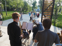 "В городском саду играет духовой оркестр..." - эти слова известной песни вспомнились на открытии танцевальной площадки в Сквере Искусств в северной части Миасс. Теплый вечер 25 июня, наполненный живой музыкой, собрал жителей Миасса самых разных возрастов. Живая музыка в исполнении Муниципального духового оркестра (руководитель Андрей Бесогонов), давно знакомые и любимые мелодии, танцы - всё это подарило гостям мероприятия позитивный заряд и создало прекрасное настроение. Этот вечер, безусловно, прошёл в незабываемой атмосфере чарующей музыки. А самые интересные его моменты запечатлел наш коллега Александр Мизуров.