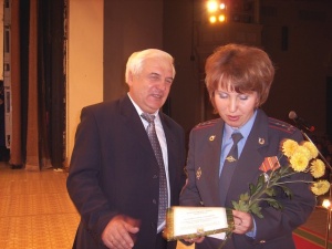 89-ю годовщину образования милиции отметили в минувшую пятницу, 10 ноября, миасские стражи порядка. Праздничный вечер в ДК автомобилестроителей начался с демонстрации видеоролика, подготовленного телекомпанией Миасс - ТВ, в котором были представлены различные стороны работы милиции. Открыл вечер начальник Миасского УВД Владимир Морозов. Слова благодарности, пожелания здоровья, трудовых успехов, надежного семейного тыла, неоднократно звучали в этот вечер со сцены. И конечно же, те, кто за прошедший год смог проявить в лучшем свете свое профессиональное мастерство, были отмечены грамотами, наградами, памятными подарками и звездами на погонах. Выразить свою признательность силовым структурам за доблестное несение службы на сцену поднялся глава миасского городского округа Иван Бирюков. Совместно с главой администрации Виктором Ардабьевским он преподнес в подарок два компьютера, которые станут хорошими помощниками в трудовых буднях сотрудников УВД. Цветной принтер и комплект диктофонов был подарен генеральным директором АЗ "Урал" Виктором Корманом. Это не первый дар автозавода милиции: ранее для УВД был изготовлен по заказу спецавтомобиль. А представитель предприятия "ГИРД" Евгений Кореньков сделал подарок для одной из дежурных частей - DVD плеер с системой караоке. Особо на торжественном вечере отмечались сотрудники, которые создали семьи в этом году. Молодожены были приглашены на сцену вместе с супругами для вручения подарков - бытовой техники. Не остались без подарков и ветераны МВД в отставке, которые по разным причинам не смогли прийти на вечер, и молодые сотрудники, поступившие на службу после окончания учебы в Челябинской академии МВД. Завершил церемонию вручения подарков директор предприятия "ИВЕКО-УРАЛАЗ" Владимир Новик. Владимиру Морозову были переданы ключи от новенького автомобиля ВАЗ-2110, который уже в ближайшее время поступит в распоряжение одной из частей УВД. Трехчасовым концертом с эффектными восточными танцами, цирковыми номерами, и лирическими песнями порадовали в праздничный вечер стражей порядка коллективы Дворца автомобилестроителей. Наталья Мозговая