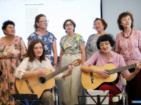 В этот раз наша землячка провела литературный вечер, посвящённый малой родине. Читала стихи, пела песни под гитару, музицировала на пианино.