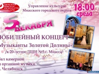 "Город в Золотой долине" - так часто называют наш приветливый город Миасс. Действительно, в миасской долине добывают настоящее золото, но главное "золото" города - это талантливые люди, которые воспевают свой любимый край в стихах и прозе, в удивительных красках и вдохновенных мелодиях. Музыкальная "палитра" Миасса - целое созвездие талантов в школах искусств, музыкальном колледже, домах и дворцах культуры. И каждое событие в музыкальных коллективах - общий праздник и совместное творчество.... [далее]