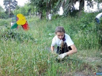 Подошла к концу третья трудовая неделя для подростковых отрядов Миасса. Уже многое сделано для благоустройства родного города, а на посёлке Динамо развернулась настоящая война против сорняка "номер один" лета 2013. Таких зарослей "Лопуха большого" (Arctium lappa) горожане, наверное, не припомнят. Вольготно ему на наших газонных просторах, да на пустырях; выше полутора метров метров поднялся. И никакая засуха ему не страшна. А вот ребята из трудотряда школы искусств № 5 справляются с сорняком... [далее]