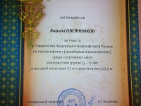 Подарок к Дню родного городаВоспитанник клуба "Атлант" Овсянников Кирилл завоевал звание чемпиона России на первенстве федерации пауэрлифтинга России среди спортивных школ