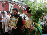 Забрался втихаря на балкончик, где располагался хор. Сверху вниз вид был замечательный. Сейчас балкона в храме нет. При первых же щелчках "Зенита" меня "расшифровали" и, узнав, что благословения на съёмку нет, выпроводили с балкона.