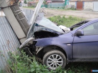 "Поймал" столбРанним утром в посёлке Тургояк 20-летний водитель проверил на прочность деревянный столб