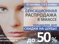 Только 31 октября, 1 и 2 ноября в Миассе пройдёт меховая ярмарка, которая обещает стать одним из самых масштабных событий осени. Скидки на шубы и дублёнки коллекций 2015 года до 50%, гарантия качества изделий от производителя, и, впервые в Миассе, акция "TRADE-IN": сдай старую шубу, получи скидку на новую. Пропустить такое предложение нельзя.