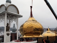 Новый сияющий восьмитонный купол занял сегодня, 12 ноября, своё законное место на церкви Воздвижения Честного Креста Господня в Сыростане. Ещё один, малый купол, был установлен на колокольне. При этом высота самой колокольни увеличилась на пару метров - в отличие от прежней конструкции, под самим навершием смонтировали двухметровый барабан. По словам отца Владимира, настоятеля храма, изначальный, 18 века, купол был не блестящим. Он был из чёрного металла с неким покрытием. Но к моменту... [далее]