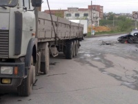 Вчера, 23 мая, на объездной дороге Тургоякского шоссе в районе завода КПД произошло ДТП с участием грузового автомобиля. Водитель МАЗа с прицепом перед началом движения не убедился в безопасности манёвра и столкнулся с ВАЗ-21124, который двигался в попутном направлении. По счастью, в результате аварии, никто не пострадал.