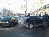 Вчера, 31 января, в начале шестого вечера на регулируемом перекрёстке проспекта Автозаводцев и улицы Ферсмана водитель "Ауди" при повороте налево не уступил дорогу автомобилю "Форд", который двигался со встречного направления на разрешающий сигнал светофора. Помощь медиков водителям не понадобилась. А вот у машин - изрядные "травмы".