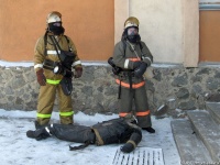 Прибыв на место имитированного происшествия, пожарные стремительно размотали рукава гидрантов и вбежали в здание. Там, на третьем этаже находились "потерпевшие", по сценарию учения огонь преградил им путь на улицу. Для спасения людей на... [далее]