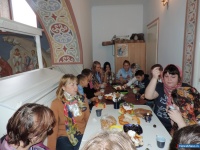 Едва войдя в храм, прихожане восхитились красотой росписи, её цветовой гаммой. Они с интересом выслушали о том, что расписывали храм мастера из Москвы. Батюшка показал... [далее]