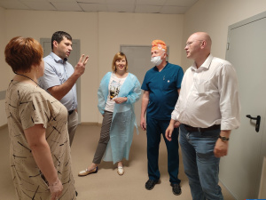 Также гостям показали отремонтированное и эндоскопическое отделение с обновлённым оборудованием, кабинет КТ и новый МРТ-аппарат, запущенный в работу в апреле нынешнего года. Ещё одной точкой посещения стал оперблок, где заканчивается ремонт. Несмотря на то, что работы ведутся уже год, медики ни на день не прекращали приём пациентов. За это время в помещениях заменили систему отопления, сантехнику, электросети и электрооборудование, а также окна, двери, настенные и напольные покрытия, двери, установили новую систему вентиляции. Более того, после перепланировки в блоке появится девятая операционная, а это значит, что операций будет проходить больше и очередь на плановые хирургические вмешательства сократится.