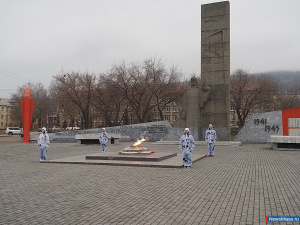 Песни в исполнении солисток ДК "Бригантина" Натальи Амировой и Анны Сысоевой добавили мероприятию особого патриотического настроя. В завершение митинга участники почтили память героев минутой молчания и возложили цветы к Вечному огню.